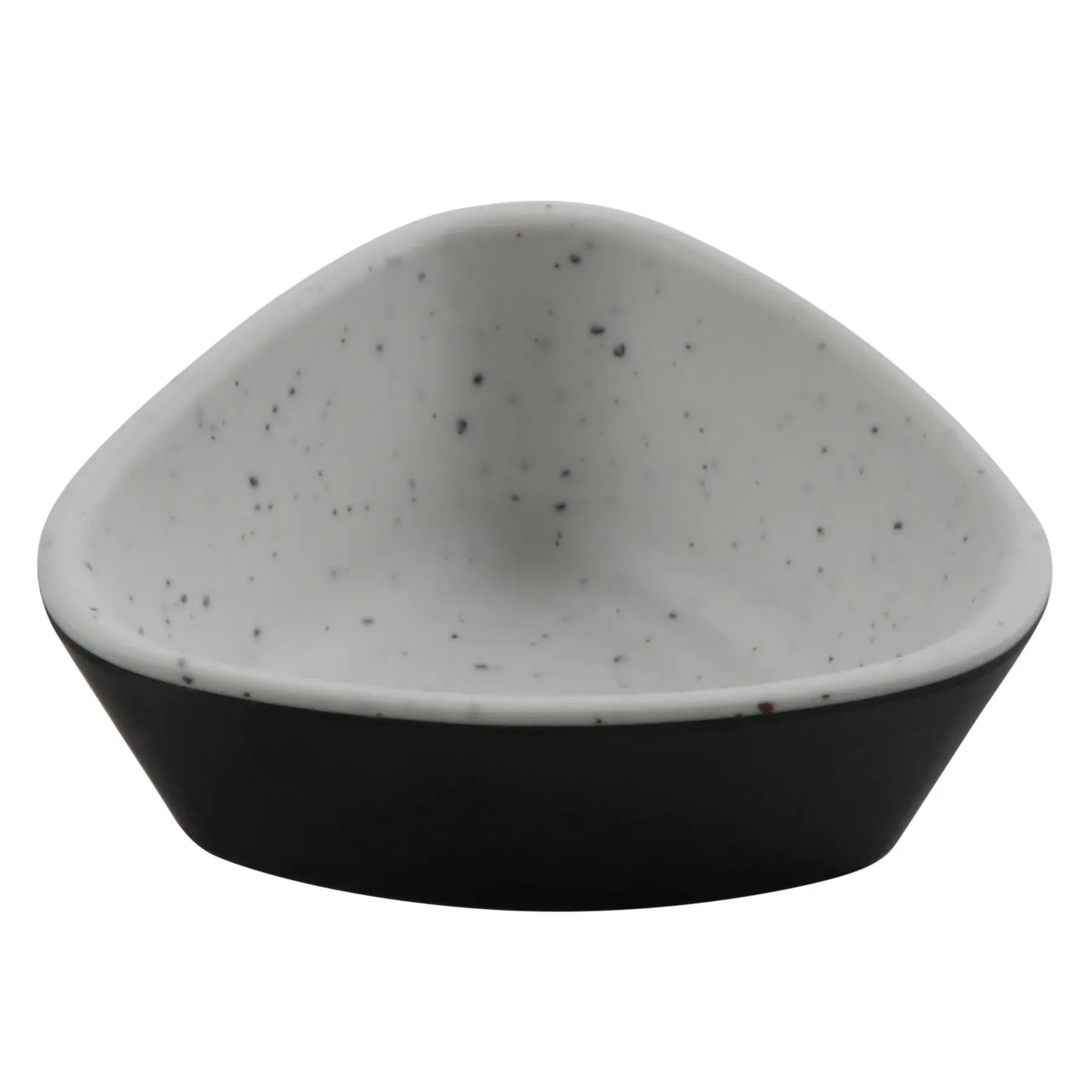 Elevate your culinary presentation with our stunning 2.5 oz revive stone natural/black triangle melamine ramekin, a masterpiece that blends aesthetic appeal with practical functionality. Crafted by the renowned brands GET and cheforward, this ramekin is designed for those who appreciate the finer details in dining. Its unique triangle shape and organic texture mimic the elegance of natural stone, making it a standout addition to any table setting. Measuring 3.25 inches in length, 3 inches in width, and 1.63 inches in height, it offers the perfect size for serving sauces, dips, or small appetizers with style and sophistication. The durable melamine material ensures it withstands the rigors of daily use while maintaining its exquisite appearance. Ideal for both casual and upscale dining environments, this plastic ramekin combines the best of modern design with timeless functionality, providing a versatile solution that complements a wide range of culinary themes. Whether you're hosting a dinner party or enhancing your restaurant's tabletop presentation, this triangle melamine ramekin promises to captivate your guests and elevate their dining experience.