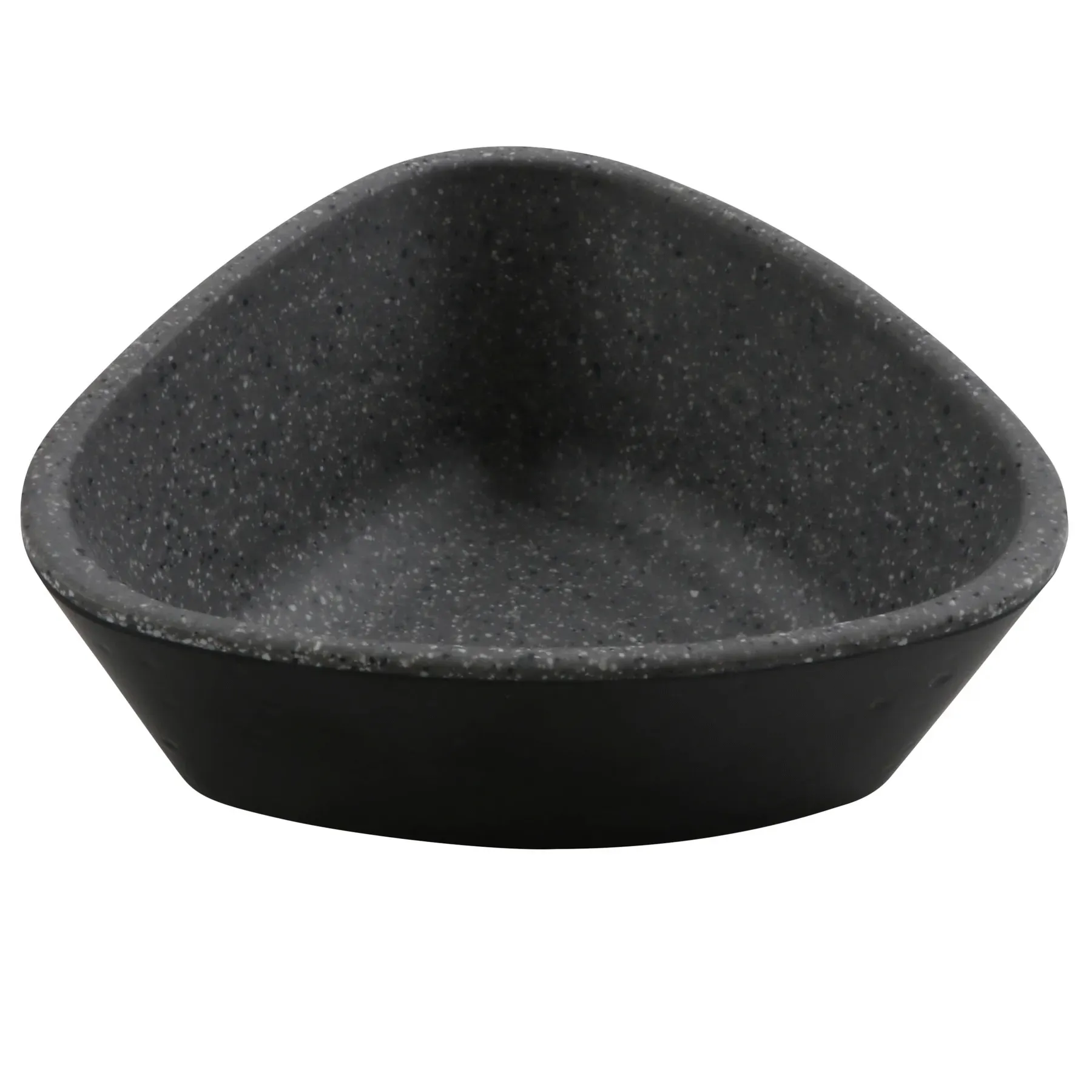 Elevate your culinary presentation with the exquisite 6.5 oz Revive Stone Grey/Black Triangle Melamine Ramekin, designed to add a touch of sophistication to any dining experience. This uniquely shaped ramekin, measuring 4.69 inches in length, 4.25 inches in width, and 0.88 inches in height, is crafted by GET and boasts the innovative cheforward design. Its striking organic texture and modern color contrast make it a standout piece that seamlessly blends with both contemporary and rustic table settings. Made from durable melamine, this ramekin offers the perfect balance of elegance and practicality, ensuring lasting performance while resisting chipping and breaking. Ideal for serving sauces, dips, or small sides, its triangular form not only maximizes space on the plate but also adds an artistic flair to your presentation. Whether you're a professional chef or a home cooking enthusiast, this melamine ramekin is a must-have addition to your serveware collection, promising to captivate your guests and elevate your culinary creations. Discover the perfect fusion of style and functionality with this exceptional plastic ramekin, designed to inspire creativity and enhance your dining experience.