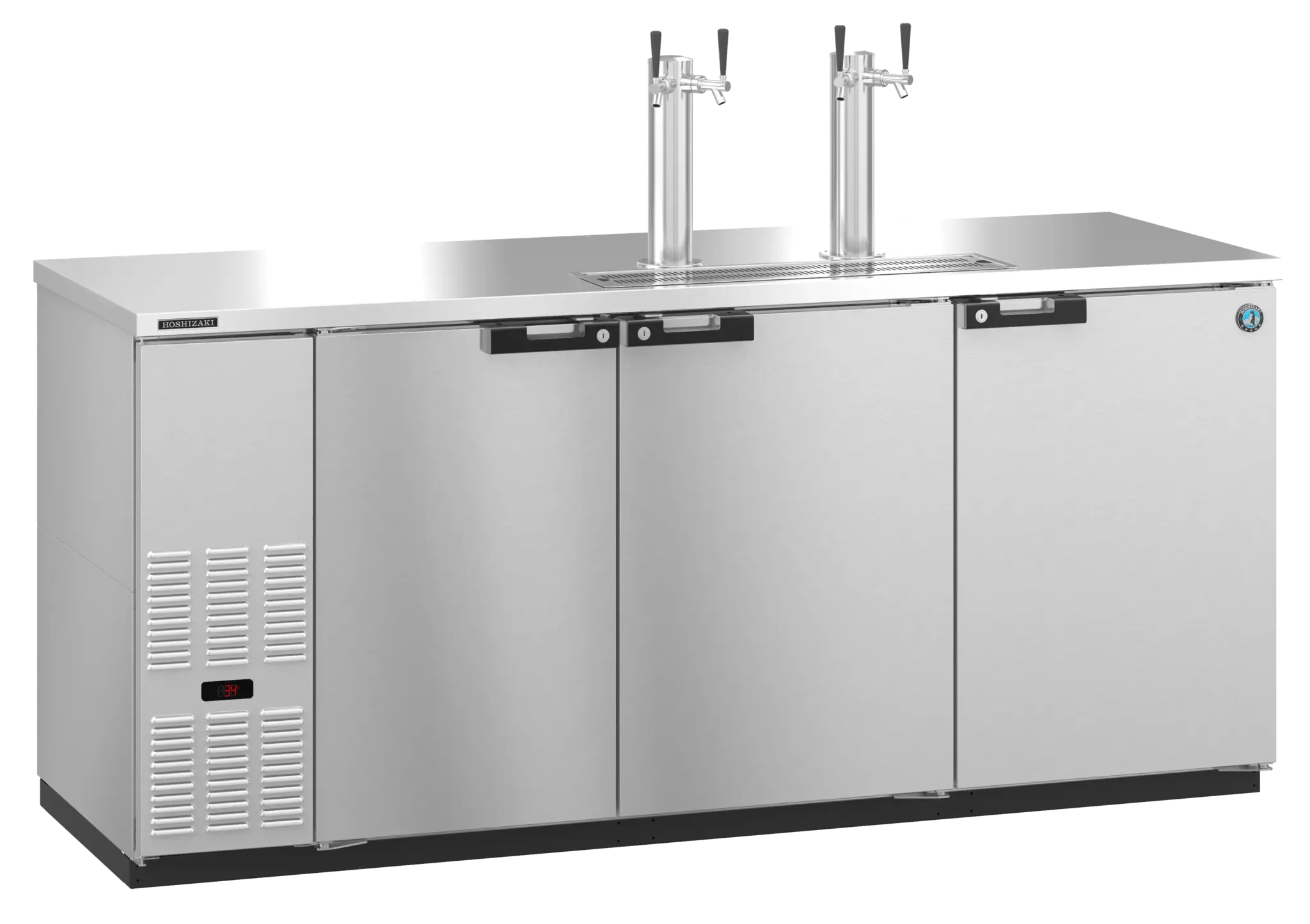 The durable stainless steel interior with led lights and thick stainless steel threshold protects door frame when loading and unloading cabinet. While the stainless steel exterior front, sides and rear, plus a 18 gauge stainless steel top will endure many busy years! The DD80-S fits: (4) 1/2 barrels (keg), and (2) polished stainless steel insulated towers with (4) plated brass faucets, it also features electronic controller with led display (°f or °c). Made to Order. Cabinet fits: (4) 1/2 barrels, or (10) slim 1/4 barrels, or (14) 1/6 barrels, or (1) 1/2 barrel and (2) slim 1/4 barrel and (5) 1/6 barrels. The unit is ETL Safety (US & C) Listed, ETL Sanitation and includes a five years compressor warranty / three years parts and labor warranty.