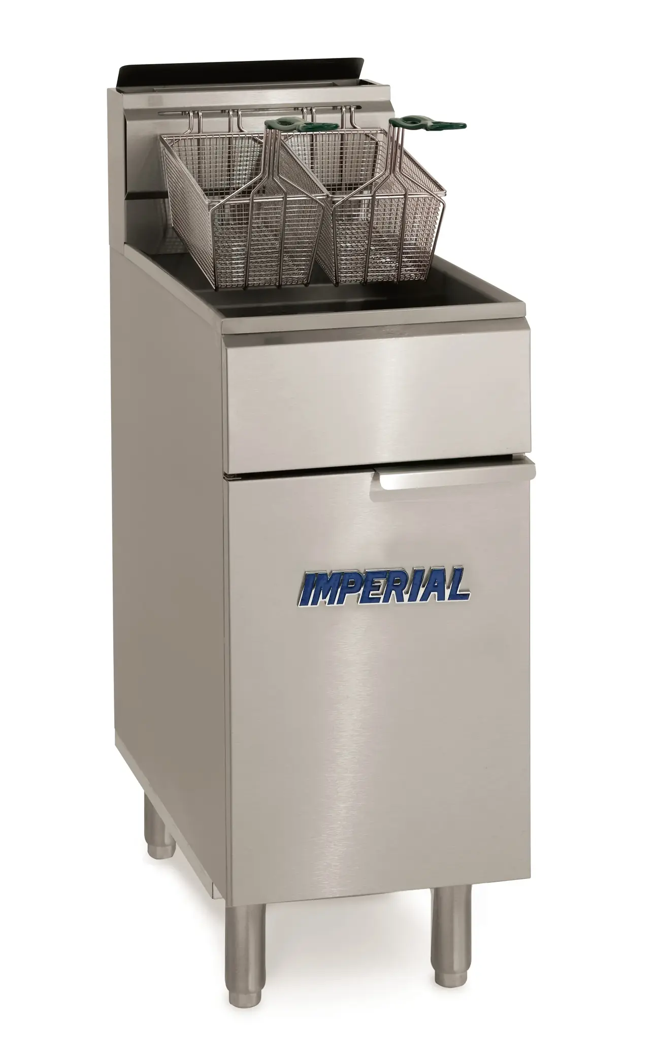 Unleash your inner chef with the Imperial IFS-40-OP Fryer. This gas-powered floor model fryer is designed for commercial restaurant use, offering a generous 40lb. capacity to meet the demands of a busy kitchen. The open pot design and snap action thermostat ensure precise temperature control, allowing you to achieve perfect results every time. The fryer comes complete with a fine mesh crumb screen and two nickel-plated baskets, providing convenience and efficiency. Made with high-quality stainless steel, the front, sides, door, basket hanger, and frypot are durable and easy to clean. The 6" legs provide stability and allow for easy placement in your kitchen. With a powerful 105000 BTU, this fryer delivers exceptional performance. ETL, ETL-Sanitation, and CE certifications guarantee its safety and reliability. Elevate your culinary creations with the Imperial IFS-40-OP Fryer.