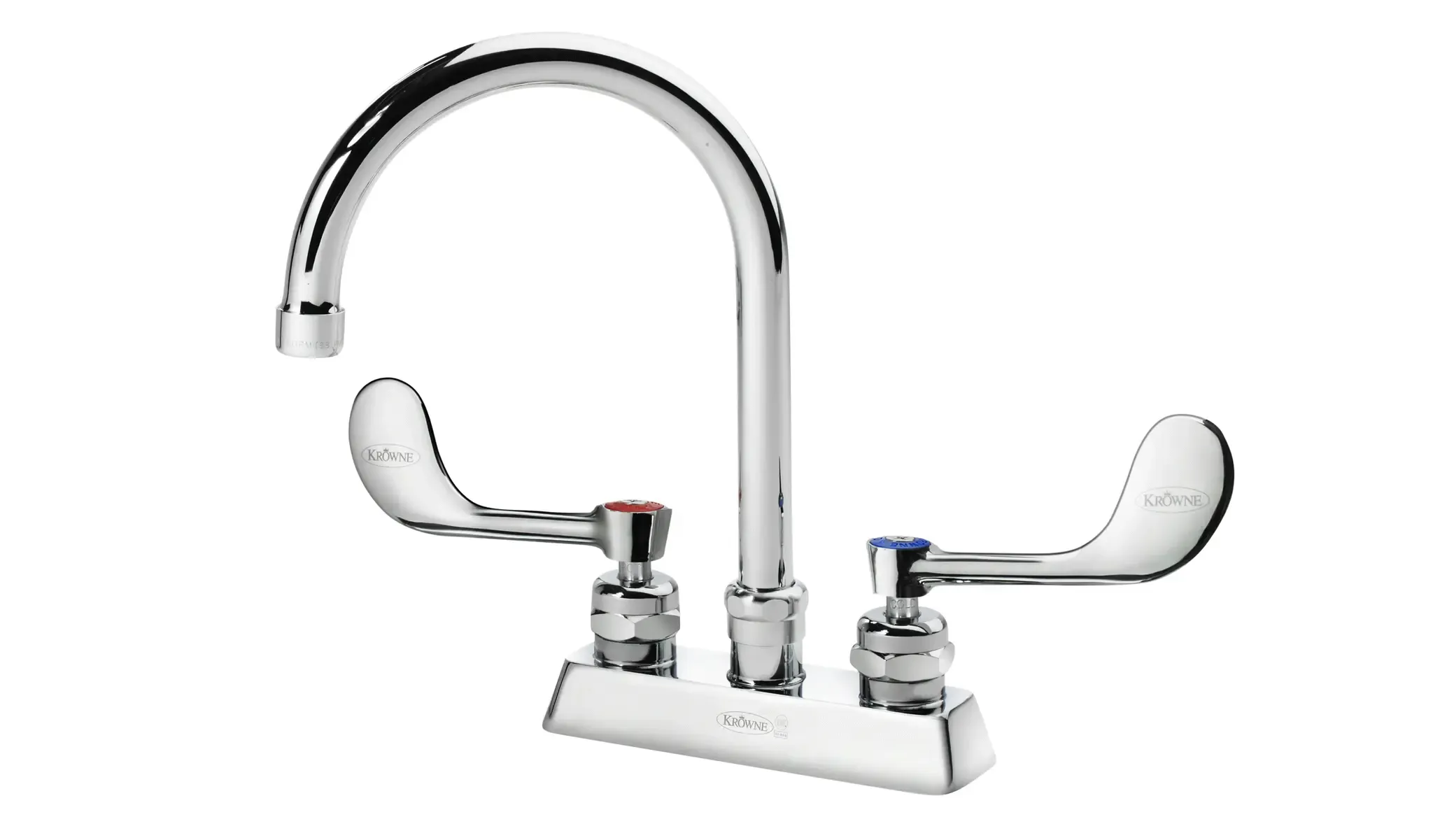 Enhance the heart of your restaurant with the Krowne Metal, 15-301L-W-E4, Gooseneck Faucet. This Royal Series 4" Deck Mount Faucet is designed to elevate the functionality and style of your commercial kitchen. With its 6" wide gooseneck spout, this faucet provides ample clearance for filling large pots and pans, making it perfect for busy restaurant kitchens. The VR wristblade handles offer easy control and precision, allowing your staff to adjust the water flow and temperature with ease. The 1.5 GPM aerator ensures a steady and efficient water flow, helping you conserve water and reduce utility costs. Upgrade your restaurant's kitchen with the Krowne Metal, 15-301L-W-E4, Gooseneck Faucet and experience enhanced functionality and style.