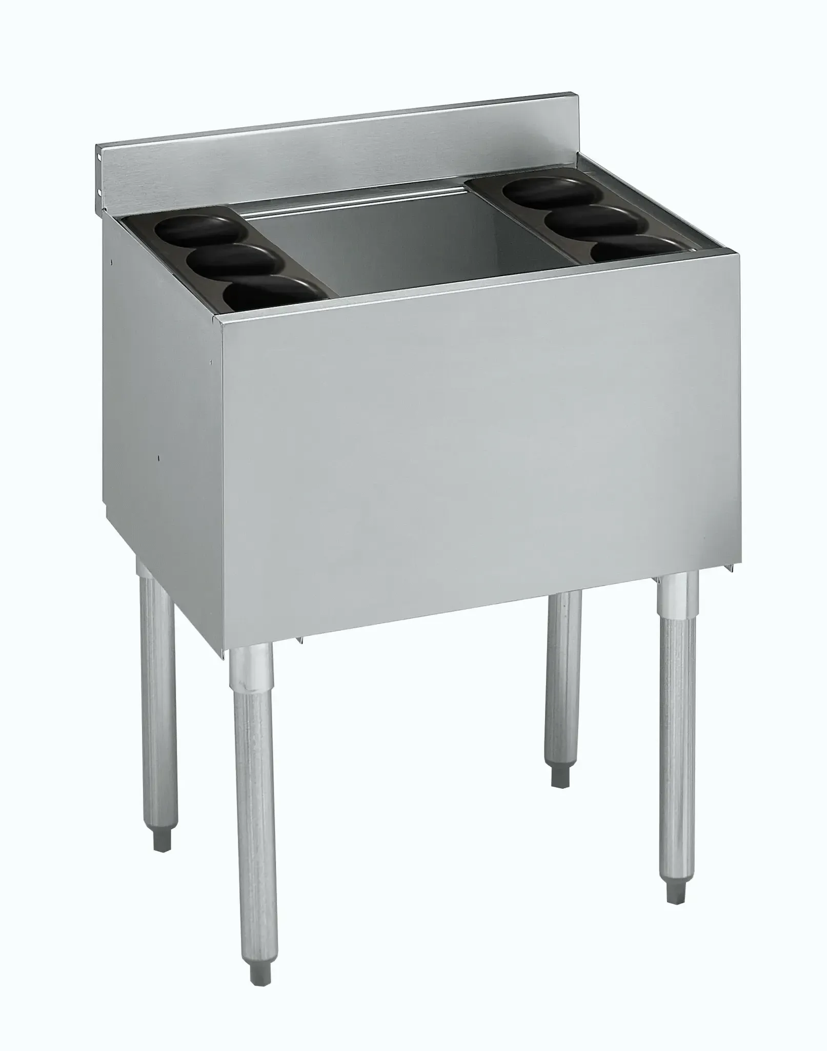 Deliver food perfection with the Krowne Metal, 18-18, Ice Bin. This Silver Series 18" Ice Bin/Bottle Well is a must-have for any commercial restaurant. With its 60 lbs. ice capacity, it ensures that you always have enough ice on hand to keep your drinks chilled and your customers satisfied. The 18"W x 19"D underbar design allows for easy installation and integration into your existing bar setup. Made by Krowne Metal, a trusted name in the industry, this ice bin is built to last and withstand the demands of a busy restaurant environment. Its sleek silver finish adds a touch of elegance to your bar area, while its durable construction ensures long-lasting performance. Whether you're serving up cocktails or refreshing beverages, the Krowne Metal, 18-18, Ice Bin is the perfect addition to your commercial restaurant.