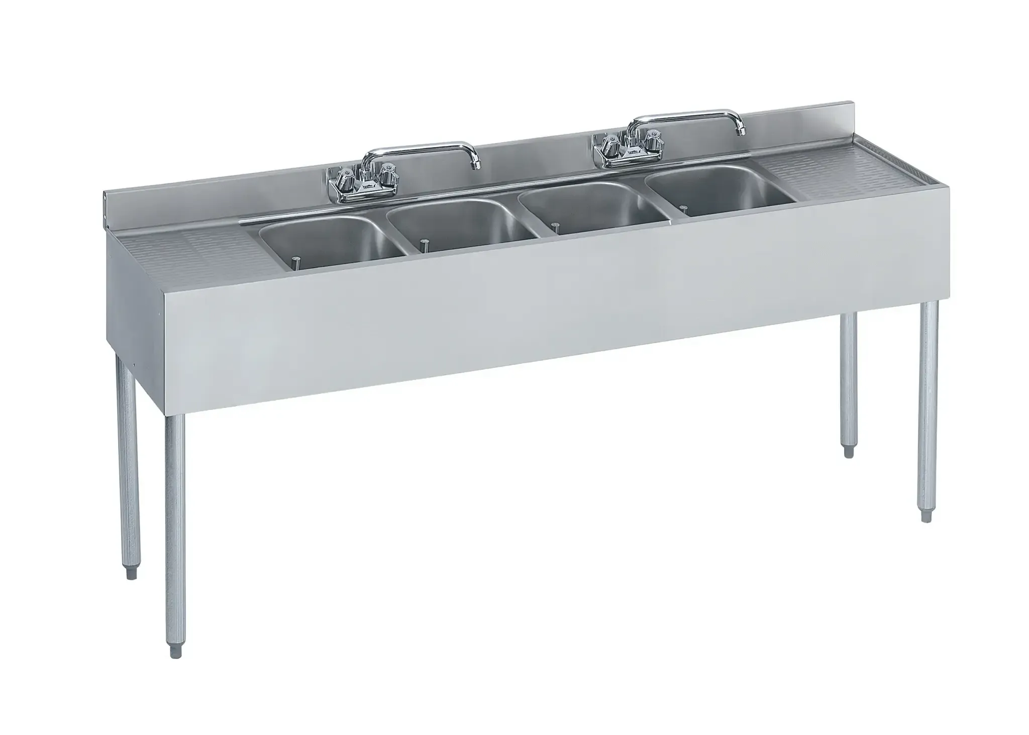 Streamline your restaurant cooking operations with the Krowne Metal, 18-64C, Bar Sink. This Silver Series 72" Four-Compartment Bar Sink is designed to optimize efficiency in a commercial restaurant setting. With 12" drainboards on both the left and right sides, this sink provides ample space for food preparation and dishwashing. The 4-bowl design allows for multitasking, making it easier to handle different tasks simultaneously. The sink comes with a faucet and two 12" drainboards, providing everything you need for a complete setup. Made by Krowne Metal, a trusted vendor in the industry, this bar sink is built to last and withstand the demands of a busy restaurant kitchen. Whether you need to wash dishes, rinse vegetables, or clean utensils, this bar sink is a reliable and efficient choice. Upgrade your restaurant's kitchen with the Krowne Metal, 18-64C, Bar Sink and experience improved workflow and productivity.
