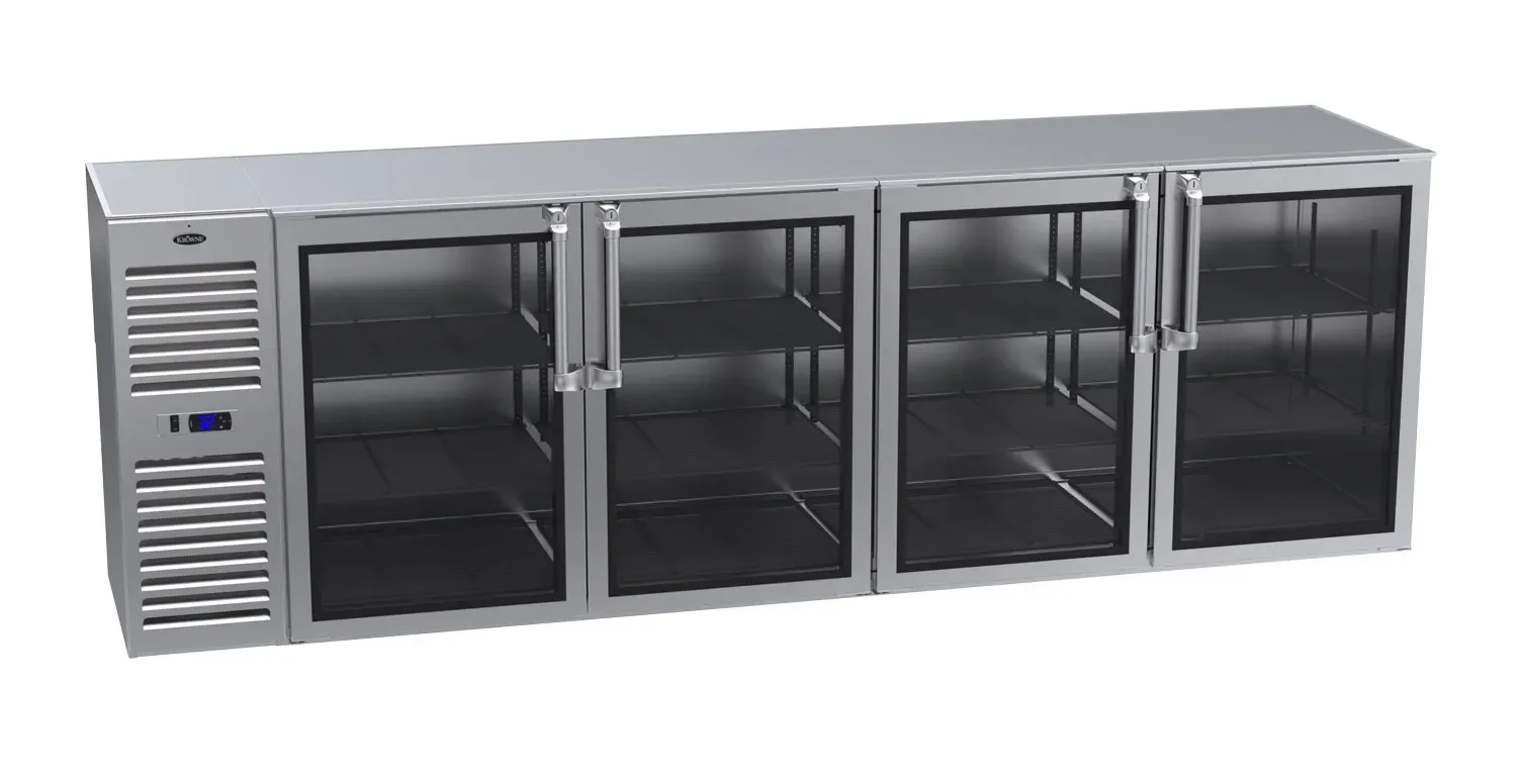 Cook with confidence with the Krowne Metal BS108L-KNS-RRLR Refrigeration- Self-Contained Back Bar Cooler. This top-of-the-line back bar cooler is designed to meet the needs of commercial restaurants, ensuring that your beverages are kept at the perfect temperature for your customers to enjoy. With its spacious 108" size, this cooler provides ample storage space for all your drinks, allowing you to keep a wide variety of options readily available. The left cabinet features stainless steel glass doors, while the right cabinet boasts solid doors, providing a sleek and professional look. The self-contained design means that this cooler is easy to install and requires minimal maintenance. Whether you're running a busy bar or a bustling restaurant, the Krowne Metal BS108L-KNS-RRLR Refrigeration- Self-Contained Back Bar Cooler is the perfect addition to your establishment.