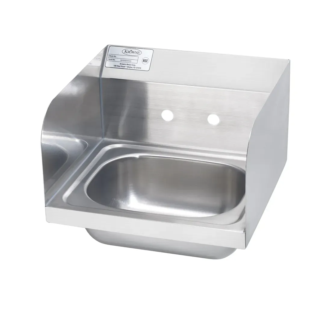 Equip your commercial kitchen with the Krowne Metal HS-26-LF Hand Sink. This 16" wide hand sink is designed specifically for commercial restaurant use, making it an essential addition to any professional kitchen. With side splashes to prevent water from splashing onto surrounding surfaces, this hand sink ensures a clean and hygienic environment. The HS-26-LF model comes without a faucet, allowing you to choose the perfect faucet to complement your kitchen's design and functionality. Made by Krowne Metal, a trusted name in the industry, this hand sink is built to last and withstand the demands of a busy restaurant. Whether you're setting up a new restaurant or upgrading your existing kitchen, the Krowne Metal HS-26-LF Hand Sink is a reliable and practical choice.
