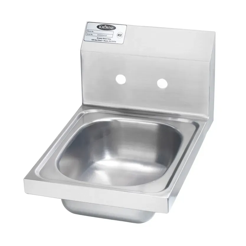 Discover kitchen perfection with the Krowne Metal HS-9-LF Hand Sink. This 12" wide space saver hand sink is designed to optimize efficiency in commercial restaurant settings. With 4" on center faucet holes (less faucet), this hand sink provides convenience and functionality for your kitchen staff. The HS-9-LF hand sink is a must-have for any restaurant looking to maintain cleanliness and hygiene standards. Its compact size allows for easy installation in tight spaces, while the durable construction ensures long-lasting performance. This hand sink is perfect for quick handwashing and is an essential addition to any commercial kitchen. Invest in the Krowne Metal HS-9-LF Hand Sink and elevate your restaurant's sanitation practices.