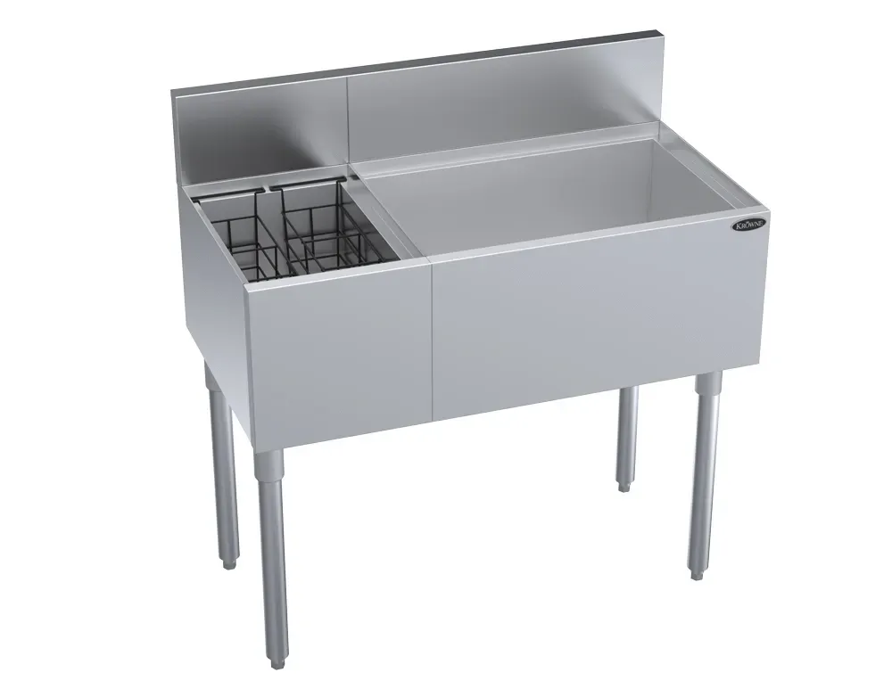 Optimize your kitchen efficiency with the Krowne Metal KR19-M36R-10 Ice Bin. This Royal Series 36" Insulated Bottle Storage/Ice Bin Multi Station with Cold Plate is a must-have for any commercial restaurant. With its 7 Circuit Cold Plate Ice Bin and Insulated Bottle Section, this unit is designed to keep your beverages chilled and easily accessible. The 36"W x 19"D underbar multi-station provides ample space for storing bottles and ice, ensuring that your bartenders have everything they need at their fingertips. Its durable construction and high-quality materials make it a reliable and long-lasting addition to your kitchen. Upgrade your restaurant's beverage service with this top-of-the-line ice bin.