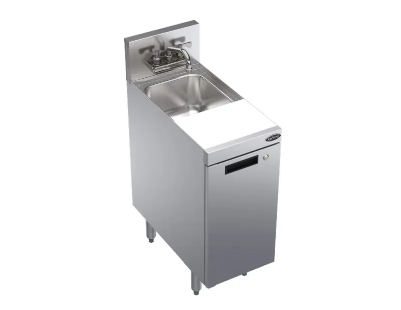 Discover kitchen perfection with the Krowne Metal KR24-MC12-C Mixology Station. This top-of-the-line mixology sink with cabinet base is a must-have for any commercial restaurant. With its sleek design and durable construction, it is built to withstand the demands of a busy kitchen. The 12" width and 24" depth provide ample space for all your mixing needs, while the underbar cabinet offers convenient storage for your supplies. The dump sink and cutting board add even more functionality, allowing you to efficiently prepare and clean up after each drink. Whether you're running a bar, restaurant, or catering service, the Krowne Metal KR24-MC12-C Mixology Station is the perfect addition to your kitchen.