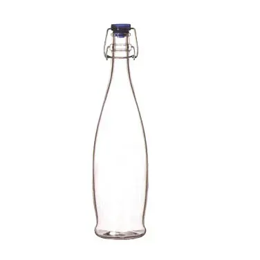 Set new standards for elegance with the Libbey Glass, 13150020, Glass Bottle. This water bottle is perfect for commercial restaurant use, offering a sleek and sophisticated design that will impress your customers. With a capacity of 1 liter (33-7/8 oz.), it is ideal for serving water or other beverages at the table. The bottle features a blue wire bail lid, ensuring a secure and leak-proof seal. Made of high-quality glass, it not only adds a touch of class to your establishment but also provides durability for everyday use. The dimensions of the bottle (H 12-5/8" T 1-3/8" B 3-1/4" D 3-1/2") make it easy to handle and pour. Each case contains 6 bottles, packed by Libbey Glass. Elevate your restaurant's beverage service with this elegant glass bottle.