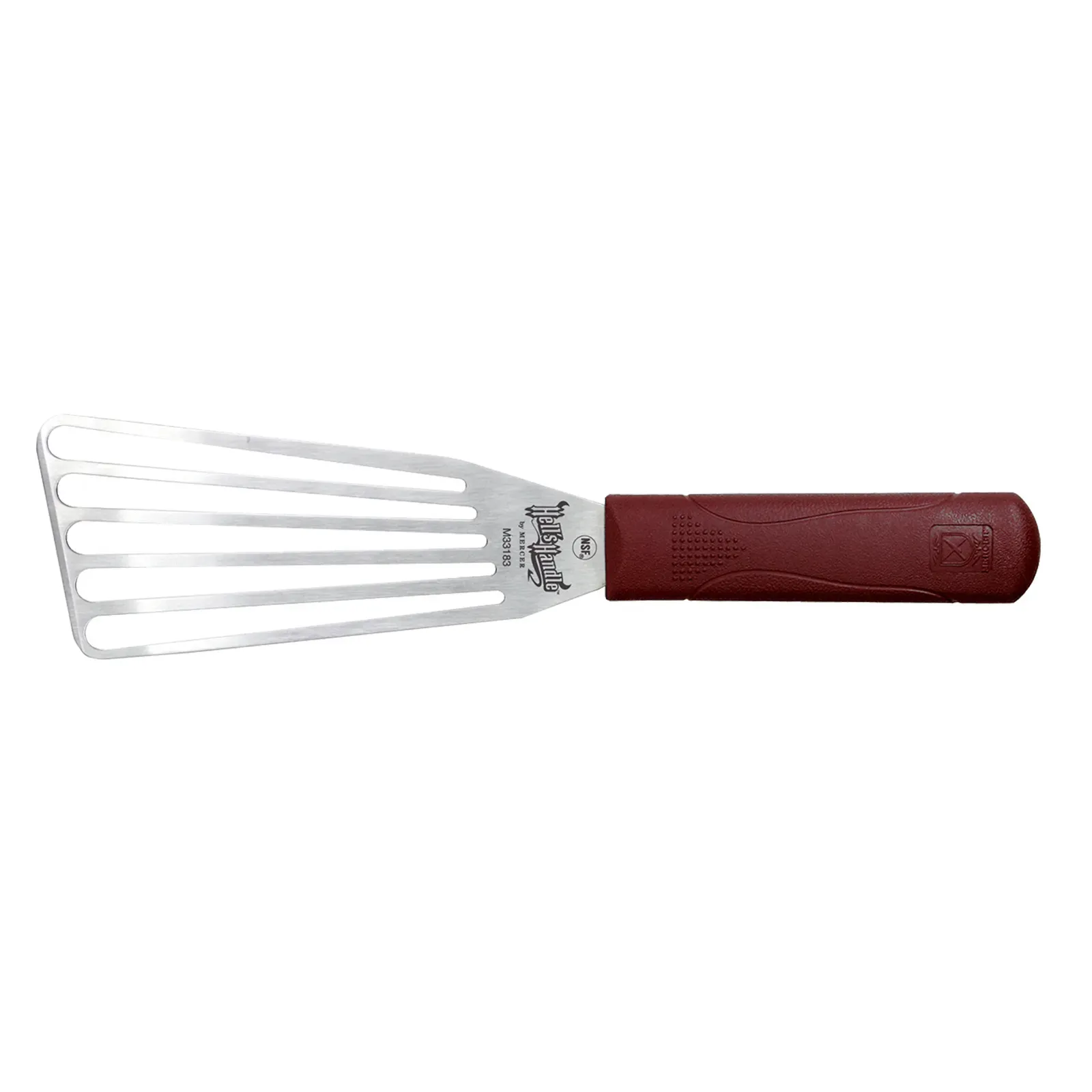 Enhance culinary precision with the Mercer Culinary, M33183, Turner, Slotted, Stainless Steel. This 6" x 3" Fish Turner is a must-have tool for any commercial restaurant. Its flexible and slotted design allows for easy flipping and draining of delicate fish fillets, ensuring a perfect presentation every time. Made from precision ground stainless Japanese steel, this turner is not only durable but also heat resistant up to 450F, making it ideal for high-temperature cooking. The dual-textured finish on the handle provides extra grip and slip resistance, ensuring safe and comfortable handling even in busy kitchen environments. With a length of 11-1/2", this turner offers the perfect balance of control and maneuverability. Upgrade your kitchen arsenal with the Mercer Culinary, M33183, Turner, Slotted, Stainless Steel and elevate your culinary creations to new heights.