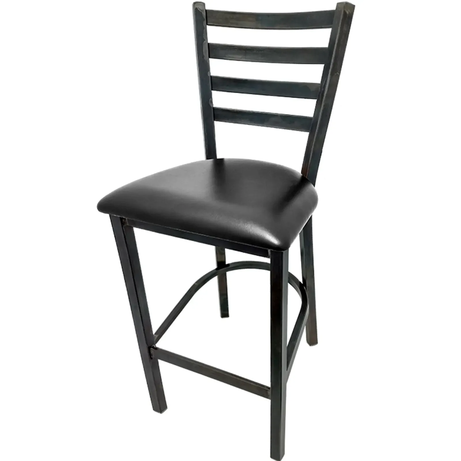 Introducing the Oak Street BM-234R-BLK Bar Stool, designed to furnish your eatery for success. This rustic ladderback barstool is perfect for commercial restaurant use, offering both style and durability. The metal frame features hot rolled steel with a premium clear coat finish, ensuring long-lasting quality. With a 1.0mm steel frame and 1-1/4" tubing, this barstool is built to withstand the demands of a busy restaurant environment. The 100% welded frame and footring provide additional stability and support. Non-marring glides protect your floors, while the standard leg supports ensure a comfortable seating experience for your guests. The black vinyl seat adds a touch of elegance and is easy to clean. The seat ships unattached from the frame, but assembly is simple. Trust Oak Street to provide you with the perfect barstool for your indoor restaurant needs.