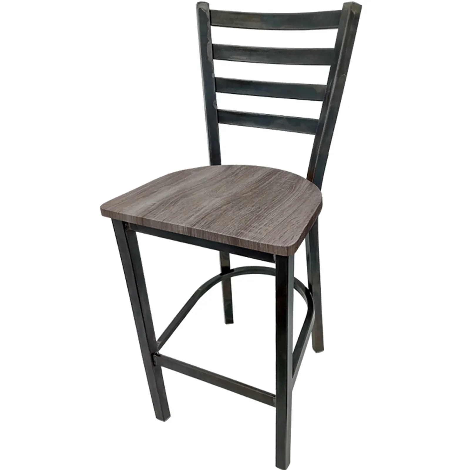 Introducing the Oak Street BM-234R-BW Bar Stool, Indoor, designed to optimize your venue's beautiful decor. This rustic ladderback barstool features a barnwood wood seat and a hot rolled steel frame with a premium clear coat finish, making it a perfect addition to any commercial restaurant setting. The 1.0mm steel frame and 1-1/4" tubing ensure durability and stability, while the 100% welded frame and footring provide added strength and support. With non-marring glides and standard leg supports, this bar stool is designed to protect your floors and provide maximum comfort for your guests. The seat ships unattached from the frame, but simple assembly is required. Whether you're running a trendy bar or a cozy bistro, the Oak Street BM-234R-BW Bar Stool is the ideal choice for adding a touch of rustic charm and authenticity to your establishment.