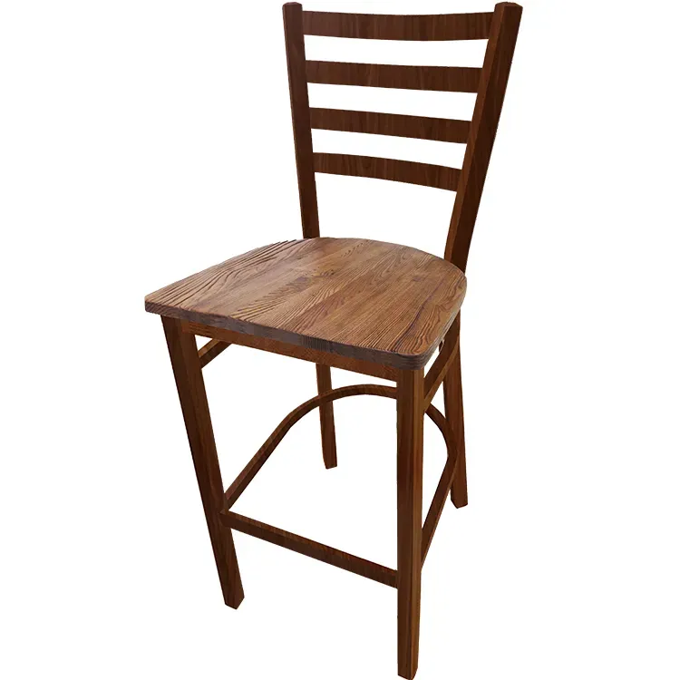 Upgrade Your Venue with Top-Quality Pieces. The Oak Street BM-234W-WA-RW Bar Stool is the perfect addition to any commercial restaurant setting. With its metalwood ladderback design and walnut finish frame, this bar stool exudes a rustic charm that will enhance the ambiance of your establishment. The reclaimed wood seat adds a touch of authenticity and warmth, while the metal frame painted to resemble real wood grain with a premium clear coat finish ensures durability and easy maintenance. The 1.2mm steel frame and 1-1/4" tubing provide exceptional strength and stability, making this bar stool suitable for high-traffic areas. The 100% welded frame and footring offer additional support and comfort for your guests. With non-marring glides and standard leg supports, this bar stool is designed to protect your floors and withstand daily use. Upgrade your venue with this top-quality bar stool and create a welcoming and stylish atmosphere for your customers.