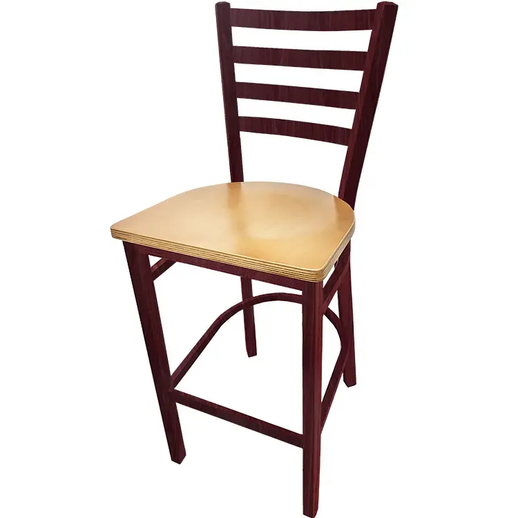 Invest in Exceptional Furniture with the Oak Street BM-234W-MH-N Bar Stool. Designed specifically for commercial restaurant use, this bar stool combines style and durability to enhance any dining space. The metalwood ladderback frame features a mahogany finish, giving it an authentic wood grain appearance that adds a touch of elegance to your establishment. The clear coat wood seat provides comfort for your guests while ensuring easy maintenance and longevity. Crafted with a 1.2mm steel frame and 1-1/4" tubing, this bar stool is built to withstand the rigors of a busy restaurant environment. The 100% welded frame and footring offer stability and support, while the non-marring glides protect your floors. With simple assembly required, this bar stool is a practical choice for any restaurant owner looking to elevate their seating options. Invest in the Oak Street BM-234W-MH-N Bar Stool and create a welcoming and stylish atmosphere for your patrons.