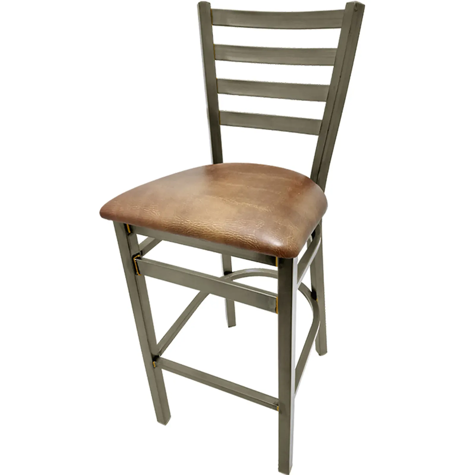 Deliver comfort with class with the Oak Street SL135C-1-BRASS-BUC Bar Stool. Designed specifically for commercial restaurant use, this bar stool combines style and durability to enhance any dining space. The clear coat ladderback metal frame with brass welds exudes elegance, while the buckskin vinyl seat offers both comfort and easy maintenance. The premium clear coat finish ensures long-lasting beauty, and the 1.2mm steel frame with 1-1/4" tubing guarantees exceptional strength and stability. With a 100% welded frame and footring, this bar stool is built to withstand the rigors of a busy restaurant environment. The non-marring glides protect your floors, and the standard leg supports provide additional reinforcement. Simple assembly is required, as the seat ships unattached from the frame. Elevate your restaurant's ambiance and provide your guests with a comfortable seating option with the Oak Street SL135C-1-BRASS-BUC Bar Stool.