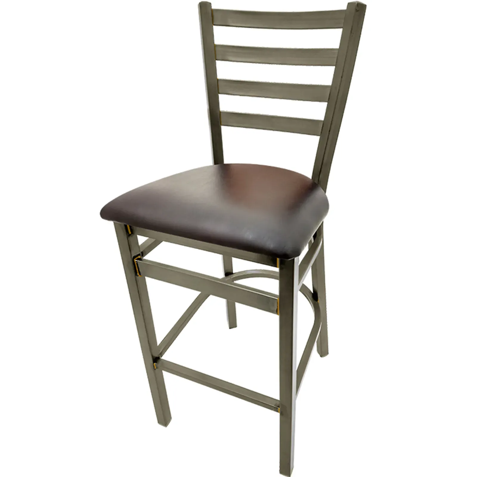 Enhance Vision Elegant Decor with Oak Street's SL135C-1-BRASS-ESP Bar Stool. Designed for commercial restaurant use, this bar stool combines style and durability to elevate any dining space. The clear coat ladderback metal frame with brass welds exudes sophistication, while the espresso vinyl seat adds a touch of elegance. Crafted with a 1.2mm steel frame and 1-1/4" tubing, this stool is built to withstand the demands of a bustling restaurant. The 100% welded frame and footring ensure stability and longevity, while the non-marring glides protect your floors. With standard leg supports and a seat that ships unattached from the frame, assembly is a breeze. Oak Street's SL135C-1-BRASS-ESP Bar Stool is the perfect choice for restaurants seeking a combination of style, comfort, and durability.