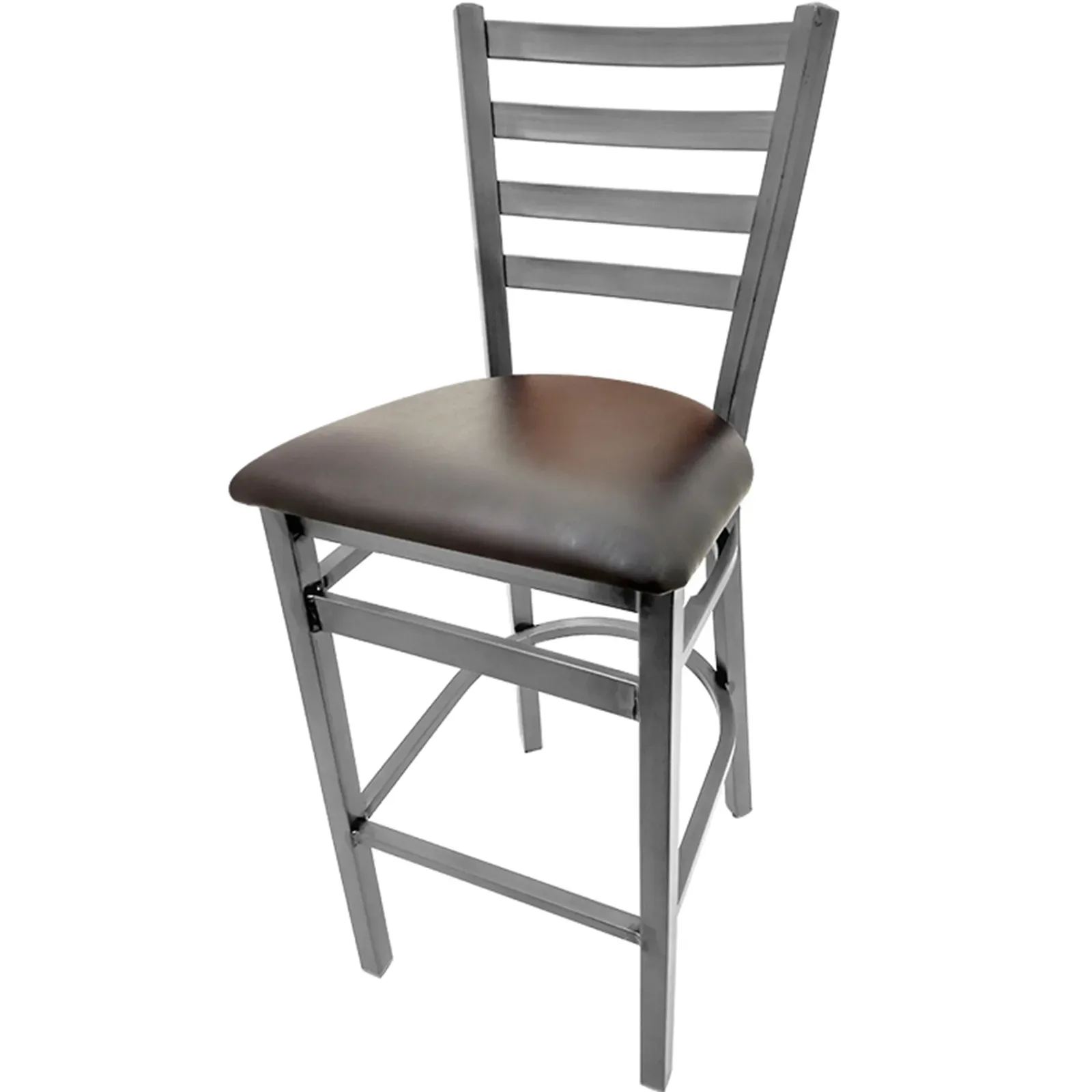 Master the Art of Stylish Furniture with Oak Street's SL135C-1-PLAIN-ESP Bar Stool. Designed specifically for commercial restaurant use, this bar stool combines functionality and elegance to enhance any dining space. The clear coat ladderback metal frame with plain welds not only adds a touch of sophistication but also ensures durability and stability. The premium clear coat finish protects against daily wear and tear, while the 1.2mm steel frame and 1-1/4" tubing provide exceptional strength. The espresso vinyl seat offers both comfort and easy maintenance, making it perfect for high-traffic areas. With a 100% welded frame and footring, this bar stool is built to withstand the demands of a busy restaurant environment. The non-marring glides protect your floors, and the standard leg supports provide additional stability. Elevate your restaurant's ambiance with Oak Street's SL135C-1-PLAIN-ESP Bar Stool.