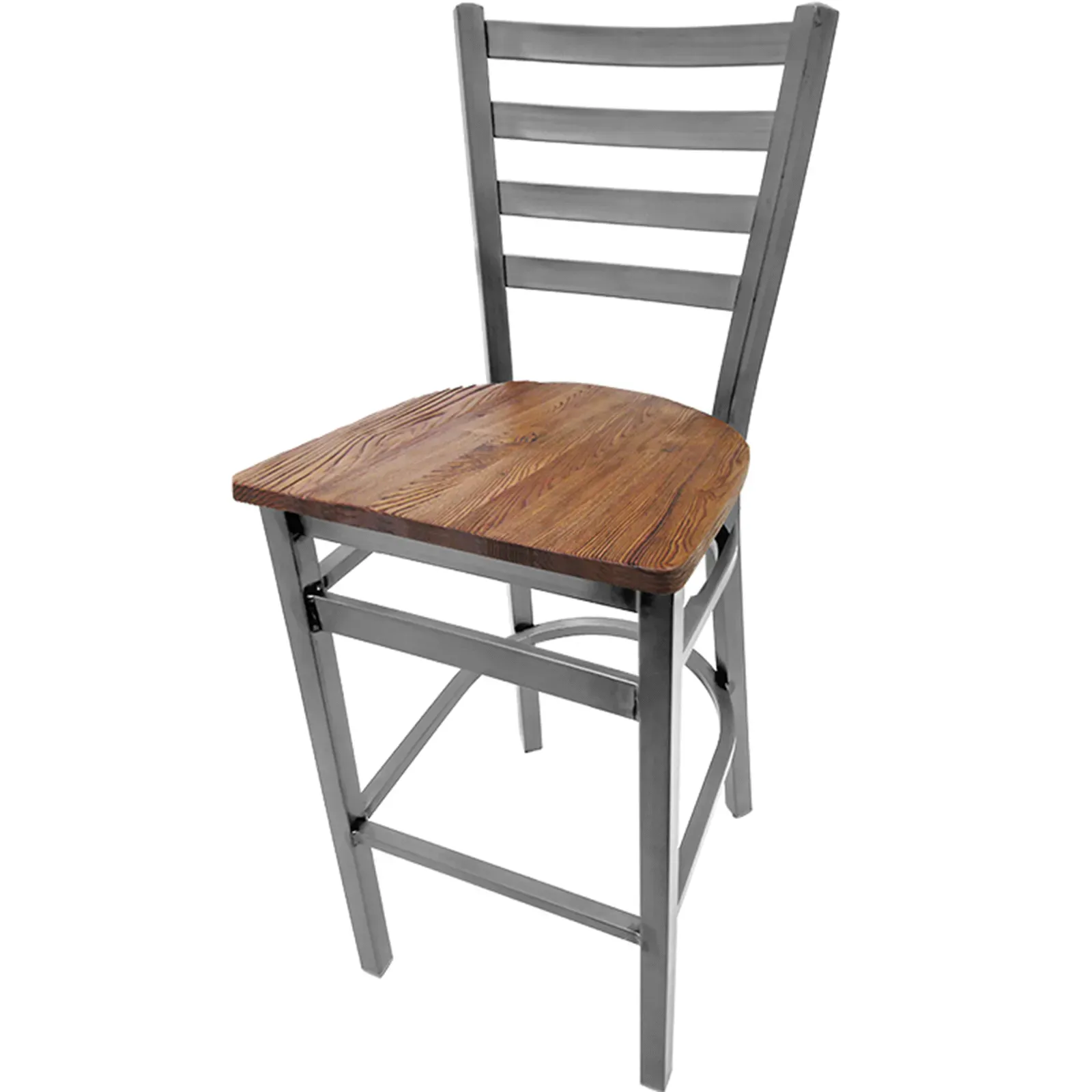 Deliver comfort and elegance to your commercial restaurant with the Oak Street SL135C-1-PLAIN-RW Bar Stool. This indoor bar stool is designed to provide utmost comfort to your guests while adding a touch of sophistication to your establishment. The ladder back design and reclaimed wood seat create a rustic yet stylish look that is sure to impress. The welded 1.2mm steel frame and 1-1/4" steel tubing ensure durability and stability, making it perfect for high-traffic areas. The footrest adds extra convenience for your customers, while the non-marring poly glides protect your floors. With a premium clear coat finish and plain welds, this bar stool exudes authenticity and charm. Easy to assemble, this bar stool is a must-have for any commercial restaurant looking to create a welcoming and comfortable atmosphere.