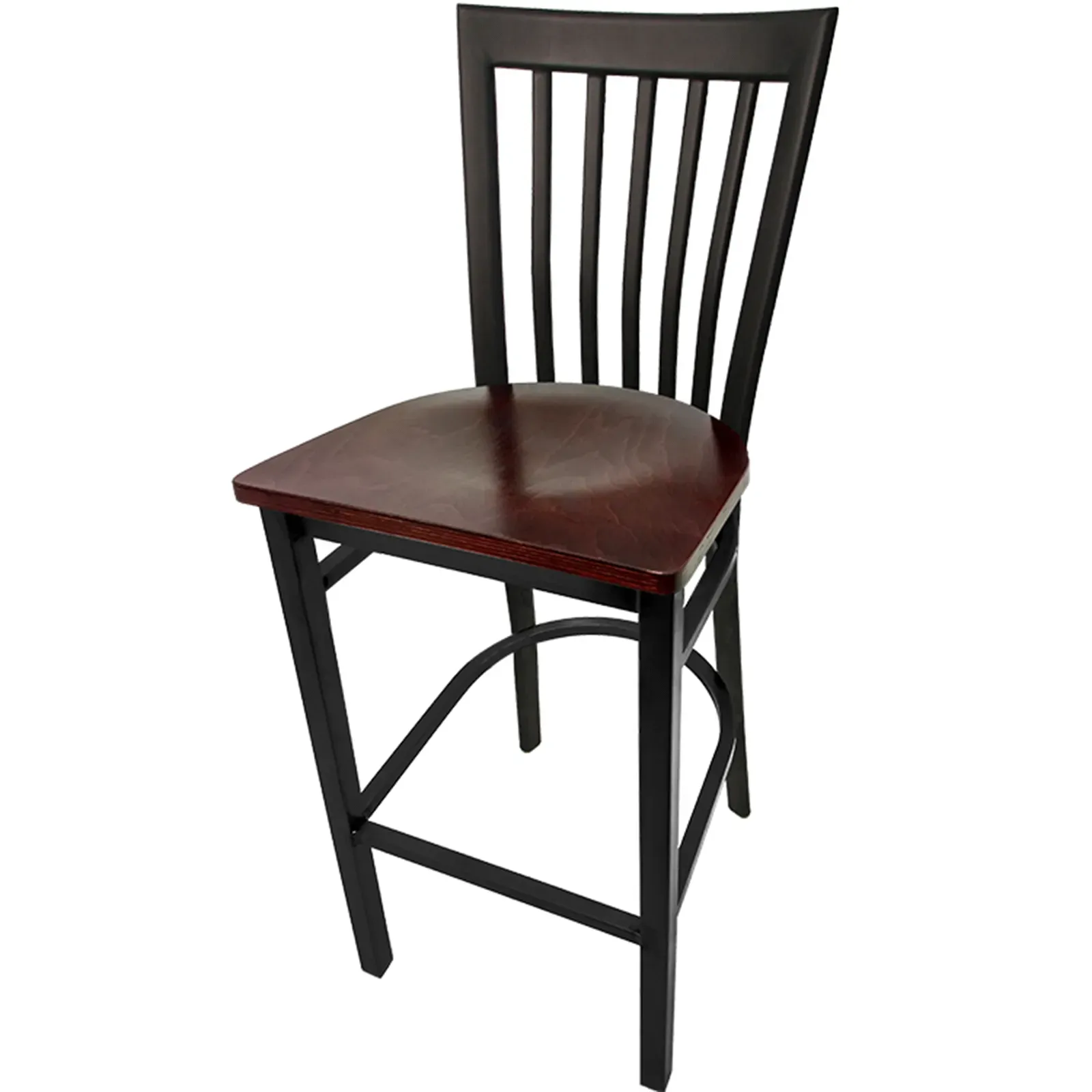 Optimize your venue's beautiful decor with the Oak Street SL4279-1-M Bar Stool. Designed for indoor use, this bar stool combines style and durability to enhance any commercial restaurant setting. The jailhouse metal frame with a premium black powder coat wrinkle finish exudes a sleek and modern aesthetic. The mahogany stain wood seat adds a touch of warmth and elegance to the overall design. Crafted with a 1.2mm steel frame and 1-1/4" tubing, this bar stool is built to withstand the rigors of daily use in a bustling restaurant environment. The 100% welded frame and footring ensure stability and longevity. Non-marring glides protect your floors from scratches and scuffs. With simple assembly required, this bar stool is a convenient choice for busy restaurant owners. Elevate your establishment's ambiance with the Oak Street SL4279-1-M Bar Stool.