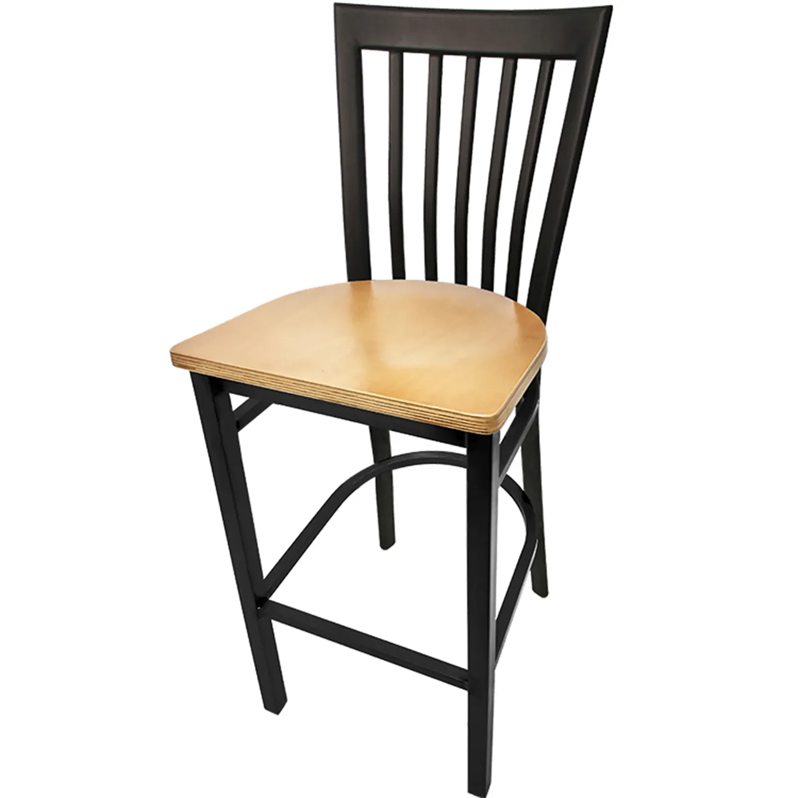 Enhance comfort and style in your commercial restaurant with the Oak Street SL4279-1-N Bar Stool. This indoor bar stool is designed to elevate the dining experience for your customers. The jailhouse metal frame with a premium black powder coat wrinkle finish adds a touch of sophistication to any establishment. The clear coat wood seat complements the black frame perfectly, creating a sleek and modern look. Crafted with a 1.2mm steel frame and 1-1/4" tubing, this bar stool is built to withstand the rigors of a busy restaurant environment. The 100% welded frame and footring provide stability and durability, ensuring long-lasting use. Non-marring glides protect your floors from scratches and scuffs. With simple assembly required, this bar stool is easy to set up and start using. Elevate your restaurant's ambiance with the Oak Street SL4279-1-N Bar Stool.