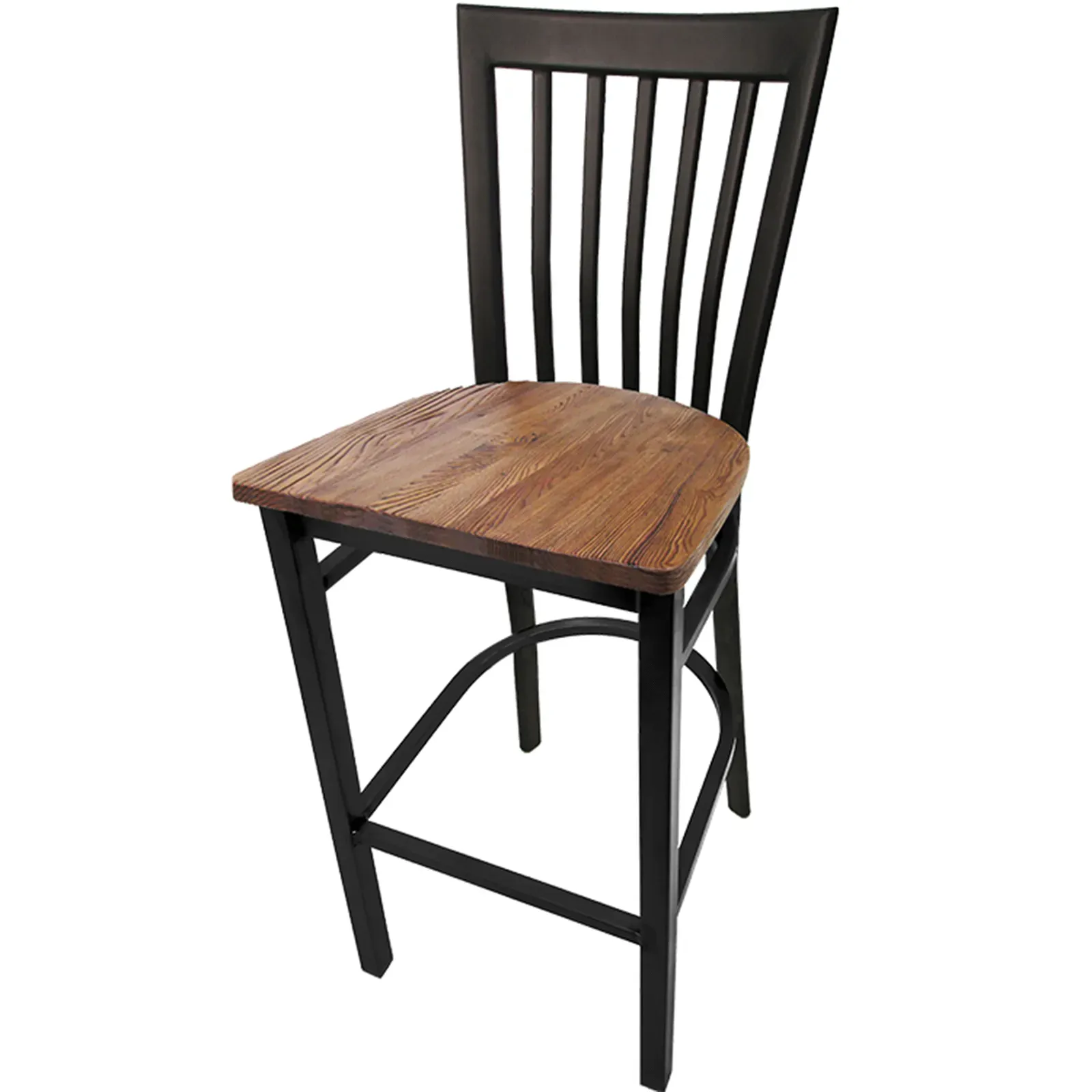 Enhance comfort and style in your commercial restaurant with the Oak Street SL4279-1-RW Bar Stool. This indoor bar stool is designed to provide maximum comfort to your guests, ensuring they have a pleasant dining experience. The jailhouse back and reclaimed wood seat add a touch of rustic charm, while the welded 1.2mm steel frame and 1-1/4" steel tubing provide durability and stability. The footrest allows your customers to relax and enjoy their meals, while the non-marring poly glides protect your floors from scratches. With its premium powder coat wrinkle finish in black, this bar stool exudes elegance and sophistication. Plus, the seat ships unattached for easy assembly. Trust Oak Street, a reputable vendor in the industry, to deliver high-quality and authentic restaurant furniture. Elevate your establishment with the Oak Street SL4279-1-RW Bar Stool.