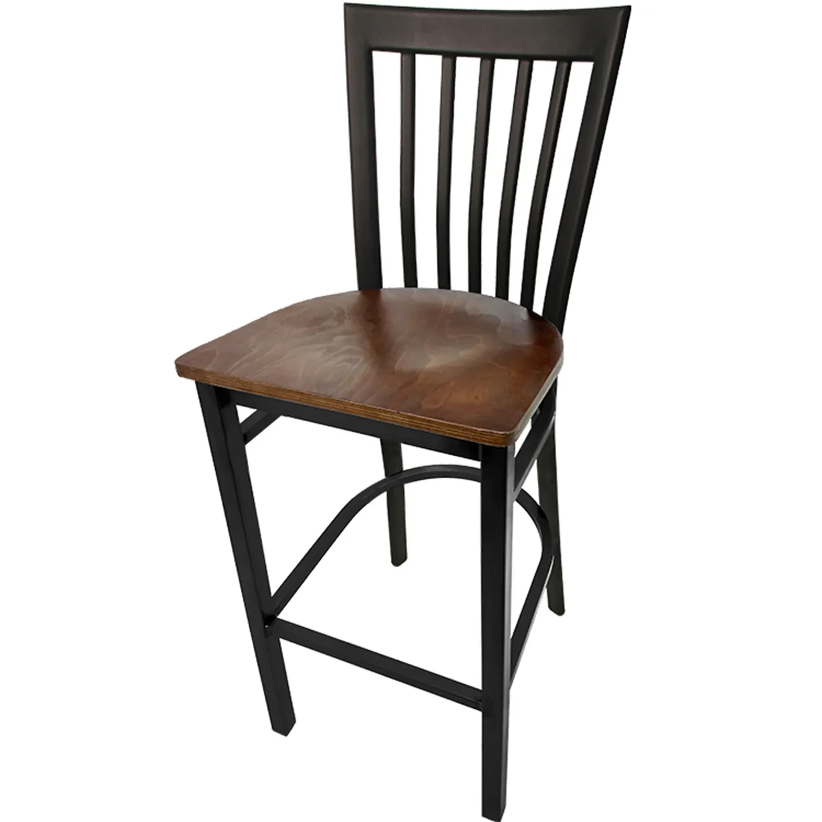 Enhance comfort, style, and atmosphere in your commercial restaurant with the Oak Street SL4279-1-WA Bar Stool. This indoor bar stool is designed to elevate your dining experience with its sleek and modern design. The jailhouse metal frame in a premium black powder coat wrinkle finish adds a touch of sophistication to any space. The walnut stain wood seat complements the black frame perfectly, creating a visually appealing contrast. Crafted with a 1.2mm steel frame and 1-1/4" tubing, this bar stool is built to withstand the rigors of a busy restaurant environment. The 100% welded frame and footring ensure durability and stability. Non-marring glides protect your floors from scratches and scuffs. With simple assembly required, this bar stool is easy to set up and start using. Elevate your restaurant's ambiance with the Oak Street SL4279-1-WA Bar Stool.