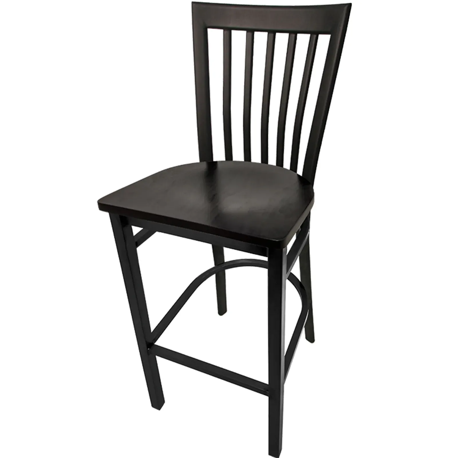Upgrade the ambiance of your commercial restaurant with the Oak Street SL4279-1-WB Bar Stool. This indoor bar stool is designed to provide superior furnishings and enhance the overall dining experience. The jailhouse metal frame in a sleek black stain, paired with a black wood seat, exudes a modern and sophisticated look. The premium black powder coat wrinkle finish on the frame ensures durability and longevity, making it perfect for high-traffic areas. The 1.2mm steel frame and 1-1/4" tubing guarantee a sturdy and stable seating option for your guests. With a 100% welded frame and footring, this bar stool offers maximum support and comfort. The non-marring glides protect your floors from scratches and scuffs. Simple assembly is required as the seat ships unattached from the frame. Elevate your restaurant's style and functionality with the Oak Street SL4279-1-WB Bar Stool.