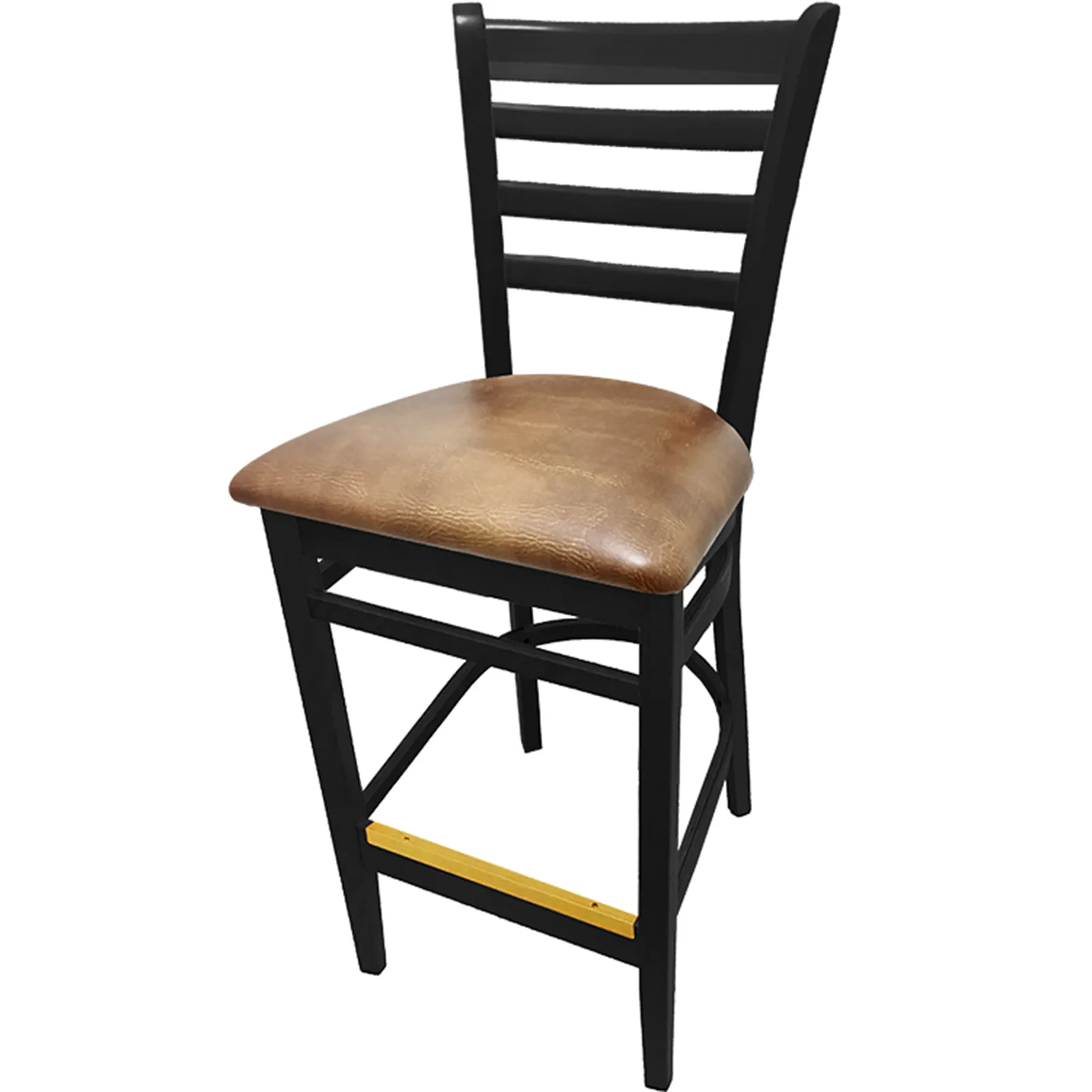 Create an atmosphere that stands out with the Oak Street WB101BLK-BUC Bar Stool. Designed for commercial restaurant use, this ladderback bar stool combines style and durability to enhance any dining space. The frame is constructed of solid European beech, ensuring long-lasting strength and stability. The black stain with dye adds a touch of sophistication, while the buckskin vinyl seat offers both comfort and easy maintenance. The seat ships unattached but can be easily attached for convenience. With two leg supports and non-marring glides, this bar stool provides a secure and stable seating option for your guests. Whether you're running a bustling bar or an elegant restaurant, the Oak Street WB101BLK-BUC Bar Stool is the perfect choice to create a welcoming and stylish ambiance.