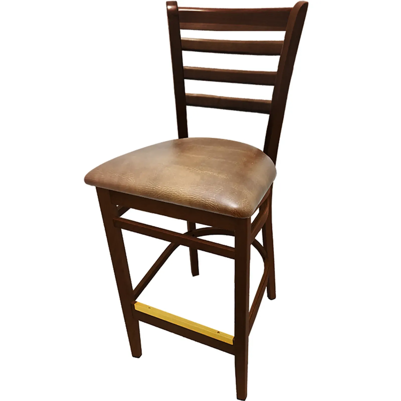 Create an atmosphere that stands out with the Oak Street WB101WA-BUC Bar Stool. Designed for indoor use in commercial restaurants, this bar stool combines style and durability to elevate your establishment. The frame is constructed of solid European beech, ensuring long-lasting strength and stability. The walnut stain adds a touch of elegance, while the buckskin vinyl seat provides comfort and easy maintenance. The seat ships unattached but can be easily attached for convenience. With two leg supports and non-marring glides, this bar stool offers stability and protection for your floors. Although not stackable, its sleek design makes it a perfect addition to any bar or counter. Trust Oak Street, a reputable vendor in the industry, to deliver quality and authenticity with the WB101WA-BUC Bar Stool.