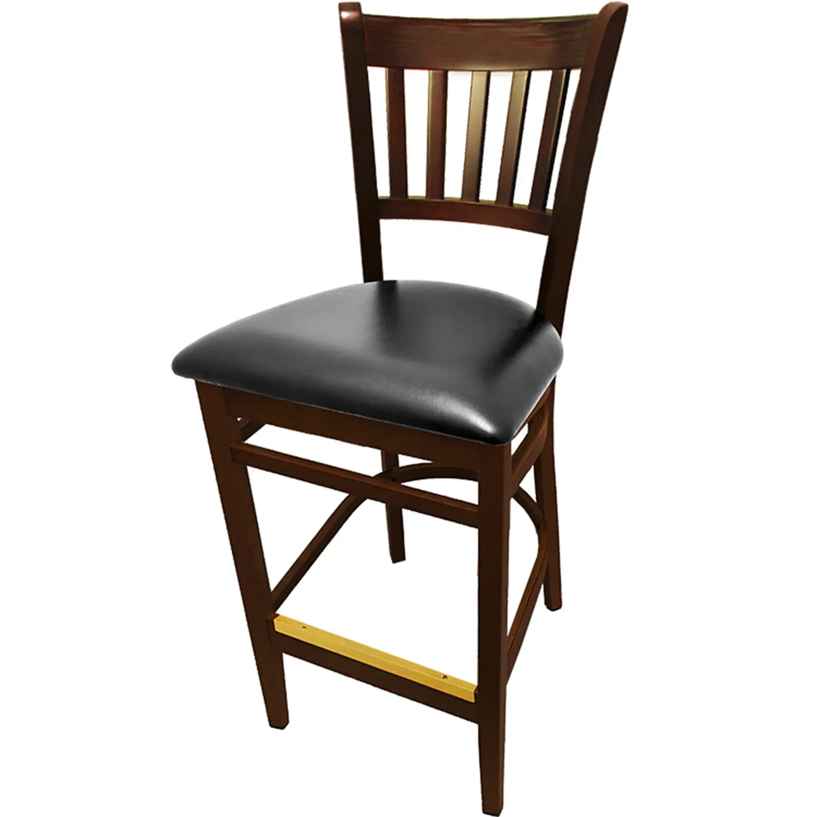 Introducing the Oak Street WB102WA-BLK Bar Stool, Indoor, designed to optimize your venue's beautiful decor. Crafted with solid European beech, this bar stool exudes authenticity and durability, making it perfect for commercial restaurant use. The walnut stain adds a touch of elegance, while the black vinyl seat provides comfort and easy maintenance. The frame's two leg supports ensure stability, and the non-marring glides protect your floors. With its commercial-grade vinyl construction, this bar stool is built to withstand the demands of a busy restaurant environment. The seats ship unattached but can be easily attached, allowing for quick setup. While not stackable, this bar stool is designed for indoor use only, ensuring it remains in pristine condition. Elevate your restaurant's ambiance with the Oak Street WB102WA-BLK Bar Stool, Indoor, and impress your patrons with its timeless style and exceptional quality.