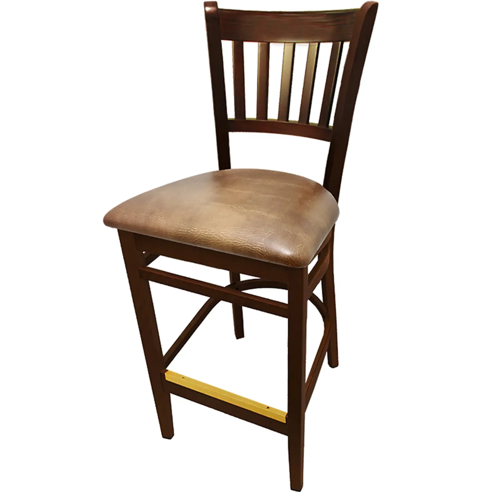 Create an atmosphere that stands out with the Oak Street WB102WA-BUC Bar Stool. Designed for indoor use in commercial restaurants, this bar stool combines style and functionality to enhance your dining space. The frame is constructed of solid European beech, ensuring durability and stability. The walnut stain adds a touch of elegance, while the buckskin vinyl seat provides comfort and easy maintenance. The seat ships unattached but can be easily attached for convenience. With two leg supports and non-marring glides, this bar stool offers stability and protects your floors. Although not stackable, this bar stool is perfect for creating a cohesive and sophisticated look in your restaurant. Trust Oak Street, a reputable vendor in the industry, to deliver quality and authenticity. Elevate your restaurant's ambiance with the Oak Street WB102WA-BUC Bar Stool.
