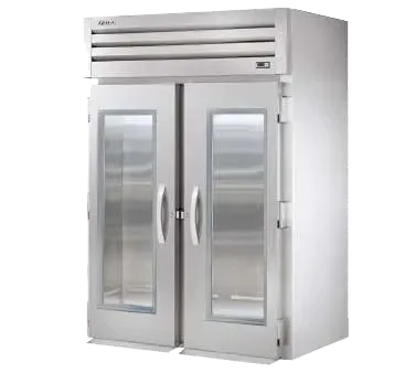 Fuel your passion for cooking with the True Manufacturing STG2RRI-2G Refrigerator, Roll-In. This top-of-the-line refrigerator is designed to meet the demands of a commercial restaurant setting. With its two-section design and two glass doors, this refrigerator provides ample storage space while allowing for easy visibility of the contents inside. The cam-lift hinges and digital temperature control ensure that your ingredients stay fresh and at the optimal temperature. The incandescent interior lighting illuminates the interior, making it easy to find what you need. The stainless steel ramps, front, and aluminum sides and interior not only give this refrigerator a sleek and professional look but also make it durable and easy to clean. With a 1/2 HP motor and 11.8 amps, this refrigerator is powerful enough to handle the needs of a busy kitchen. Made in the USA and UL EPH Classified, you can trust in the quality and reliability of True Manufacturing. Upgrade your restaurant's refrigeration system with the True Manufacturing STG2RRI-2G Refrigerator, Roll-In.
