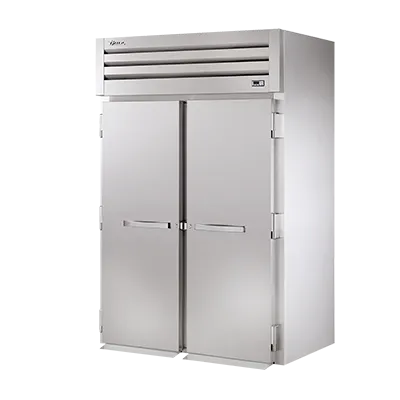 Culinary artistry redefined with True Manufacturing's STG2RRI89-2S Refrigerator, Roll-In. This top-of-the-line unit is designed to meet the demanding needs of commercial restaurants, providing the perfect storage solution for your culinary creations. With its two-section design and two stainless steel doors, this refrigerator offers ample space and easy access to your ingredients. The cam-lift hinges ensure smooth operation, while the digital temperature control allows you to maintain precise temperature settings for optimal food preservation. The incandescent interior lighting illuminates the interior, making it easy to find what you need. Made in the USA, this refrigerator features a stainless steel front, aluminum sides, and an aluminum interior for durability and easy cleaning. The stainless steel ramp accommodates 27"W x 29"D x 72"H carts (not included), making it convenient for roll-in storage. Trust True Manufacturing's STG2RRI89-2S Refrigerator, Roll-In to elevate your culinary experience and streamline your restaurant operations.