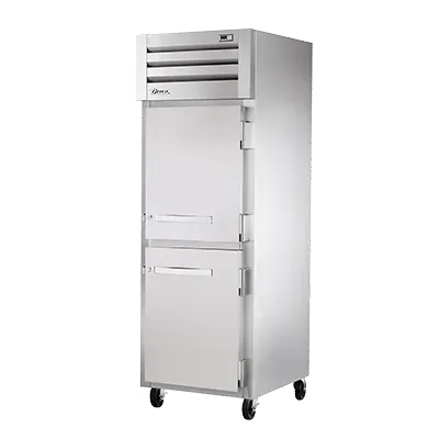 Equip your kitchen for success with the True Manufacturing STR1H-2HS Heated Cabinet Reach-In. This top-of-the-line commercial appliance is designed to meet the demands of a busy restaurant kitchen. With its stainless steel construction, including stainless steel half doors with locks and cam-lift hinges, this heated cabinet is built to withstand the rigors of a commercial environment. The digital temperature control ensures precise temperature management, while the interior kit provides ample storage space for your food items. The 5" castors make it easy to move the cabinet around your kitchen as needed. With a power rating of 1.5 kW and compatibility with 208-230v/60/1-ph power supply, this heated cabinet is both efficient and reliable. Trust True Manufacturing, a reputable vendor known for their high-quality products made in the USA. Upgrade your kitchen with the True Manufacturing STR1H-2HS Heated Cabinet Reach-In and experience the convenience and durability it offers.