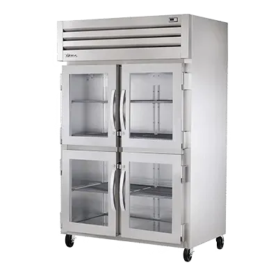 Realize kitchen dreams with the True Manufacturing STR2H-4HG Heated Cabinet Reach-In. This top-of-the-line commercial appliance is designed to meet the needs of busy restaurants, ensuring that your food stays hot and ready to serve. With its two-section design and two glass half doors, you can easily access your dishes while keeping them securely locked away. The cam-lift hinges provide smooth operation, while the digital temperature control allows you to easily adjust the heat to your desired level. The stainless steel front, sides, and interior not only give this heated cabinet a sleek and professional look, but also make it durable and easy to clean. Equipped with 5" castors, this cabinet is easy to move around your kitchen as needed. Made in the USA and UL EPH Classified, you can trust in the quality and reliability of True Manufacturing. Upgrade your restaurant's food storage capabilities with the True Manufacturing STR2H-4HG Heated Cabinet Reach-In.