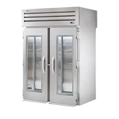 Master your restaurant's kitchen with the True Manufacturing STR2RRT-2G-2S Refrigerator. This SPEC SERIES roll-thru refrigerator is designed to meet the demands of a busy commercial restaurant. With two glass doors in the front and two stainless steel doors in the rear, this refrigerator offers easy access and maximum convenience. The cam-lift hinges and locks ensure secure storage, while the digital temperature control allows for precise temperature management. The incandescent interior lighting provides excellent visibility, making it easy to locate items quickly. The stainless steel ramps, front, sides, and interior not only give this refrigerator a sleek and professional look but also make it durable and easy to clean. With a 1/2 HP compressor, this refrigerator delivers powerful cooling performance. Made in the USA and UL EPH Classified, the True Manufacturing STR2RRT-2G-2S Refrigerator is a reliable and efficient choice for any commercial kitchen.