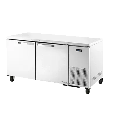 Master your restaurant's kitchen with the True Manufacturing TUC-67-HC~SPEC3 Refrigerator. This undercounter reach-in refrigerator is designed to meet the demands of a busy commercial restaurant. With its SPEC Package 3, it offers a range of features that ensure optimal performance and durability. The 16-gauge stainless steel top, sides, and back, along with the stainless steel interior, provide a sleek and hygienic storage solution. The two heavy-duty stainless steel doors come with steel handles and a door lock for added security. Inside, you'll find four PVC coated wire shelves that can accommodate all your ingredients and supplies. The electronic temperature control with a digital display allows you to easily monitor and adjust the temperature between 33 and 38 degrees Fahrenheit. Equipped with 5" castors and a side mount, this refrigerator is easy to move and position in your kitchen. It also uses R290 Hydrocarbon refrigerant, which is environmentally friendly. Trust True Manufacturing to deliver a high-quality, reliable refrigerator that will enhance the efficiency of your restaurant's kitchen.