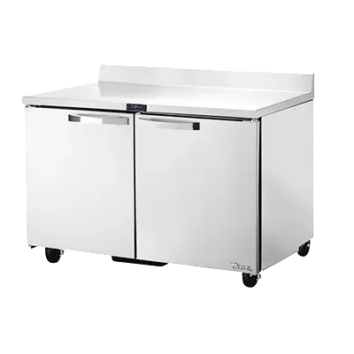 Enhance your commercial kitchen with the True Manufacturing TWT-48F-HC~SPEC3 Freezer Counter. This two-section work top freezer is designed to meet the demands of a busy restaurant environment. With a temperature range of -10F, it ensures that your ingredients and prepared dishes stay frozen and fresh. The SPEC Package 3 includes a 16-gauge stainless steel top with a splash, as well as stainless steel front, sides, and back, providing durability and easy cleaning. The stainless steel interior and heavy-duty stainless steel doors further enhance the unit's longevity. With four adjustable PVC wire shelves, you can customize the storage space to fit your needs. The electronic temperature control with a digital display allows for precise temperature management. Equipped with 5" castors, this freezer counter is easy to move and clean around. Made in the USA and ENERGY STAR certified, the True Manufacturing TWT-48F-HC~SPEC3 is a reliable and efficient addition to any commercial kitchen.