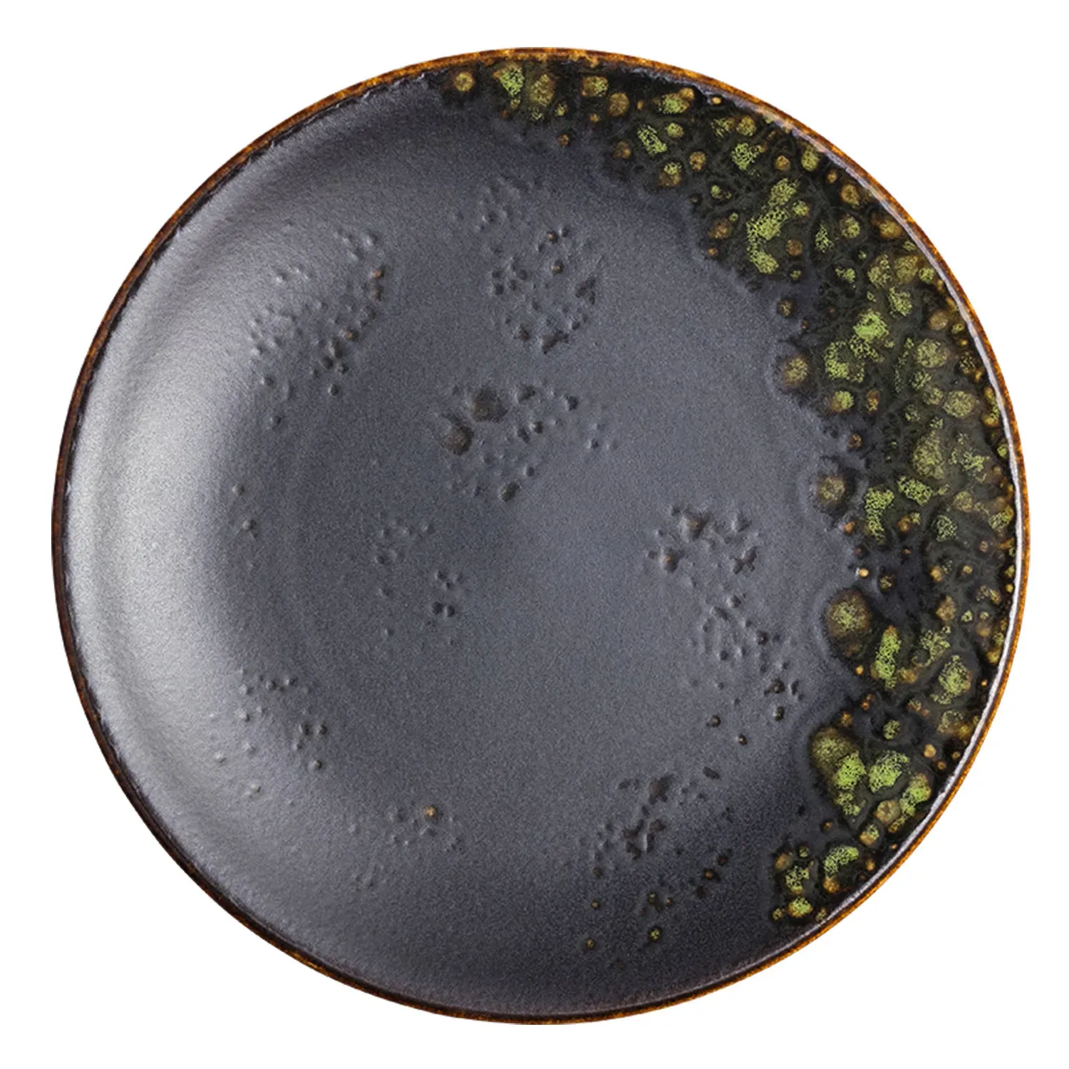 Craft a stylish and simple dining space with Vertex China, LMJ-C16, Plate, China. This 10" round coupe plate from the Premium London Moonstone Collection is perfect for commercial restaurant use. Its hand-painted design and matte black/jade reactive glaze create a unique and sophisticated look that will impress your guests. The fully glazed foot and scratch-resistant aluminum oxide reinforced body ensure durability and longevity, making it ideal for busy restaurant environments. Made of high-quality porcelain, this plate is not only beautiful but also practical. Whether you're serving appetizers, entrees, or desserts, this plate will elevate your presentation and enhance the dining experience. Trust Vertex China to provide you with exceptional quality and style for your restaurant.