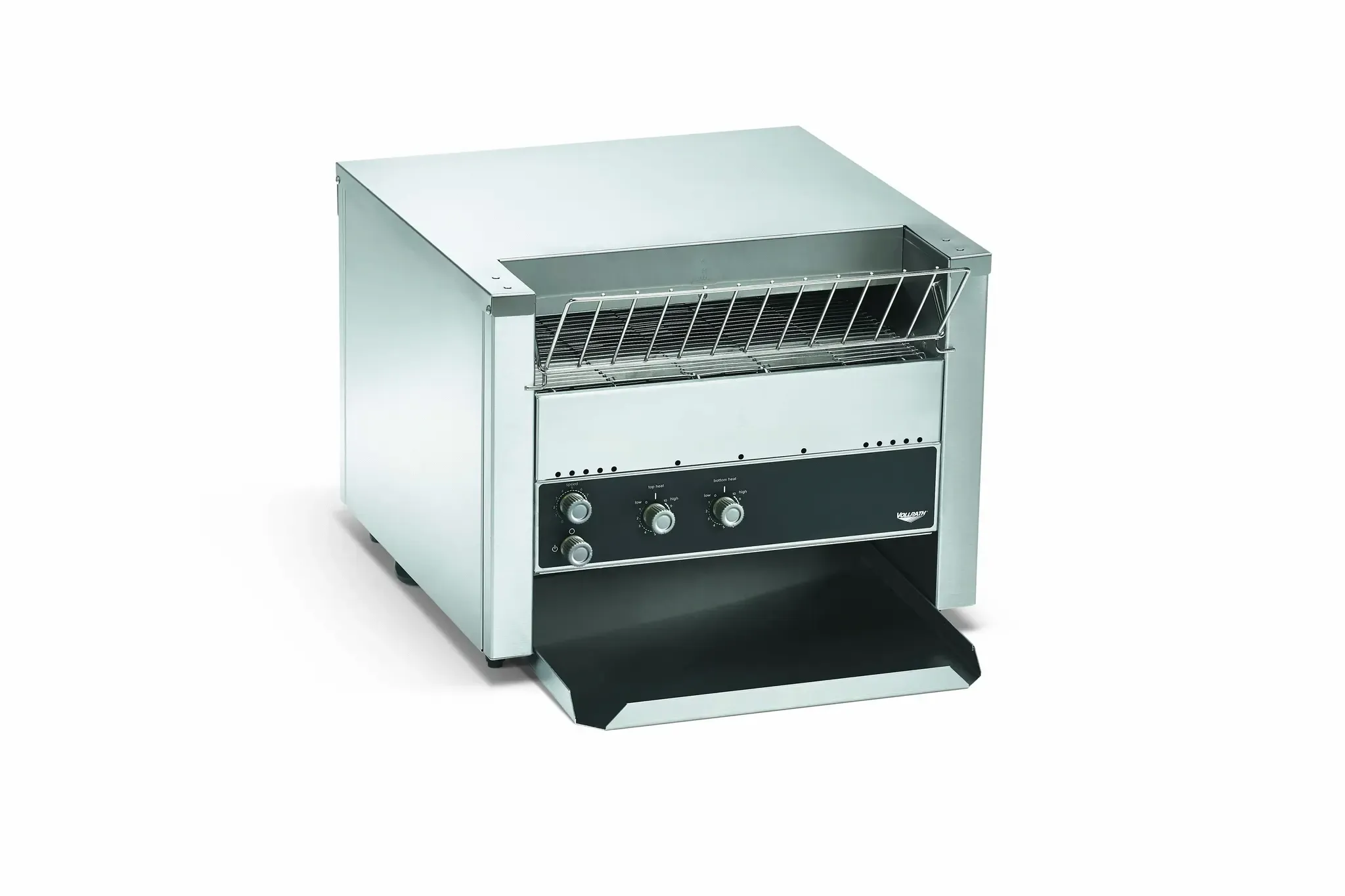 This Vollrath® JT3 bread conveyor toaster is consistent, reliable and energy-efficient. Powerful quartz heating elements respond quickly, while forced convection ensures consistent toasting. The variable-speed control and variable top and bottom heat controls help you achieve desired results. Standby mode reduces energy use up to 75 percent during slow periods and quickly returns the unit to full power when needed. The standard 1½-inch product opening is great for bread slices or bun halves, and the 14½-inch-wide conveyor can fit up to 1,000 items per hour. The durable stainless and aluminized steel exterior is built to last, and heavy-duty legs allow leveling adjustments to provide maximum stability on any countertop.